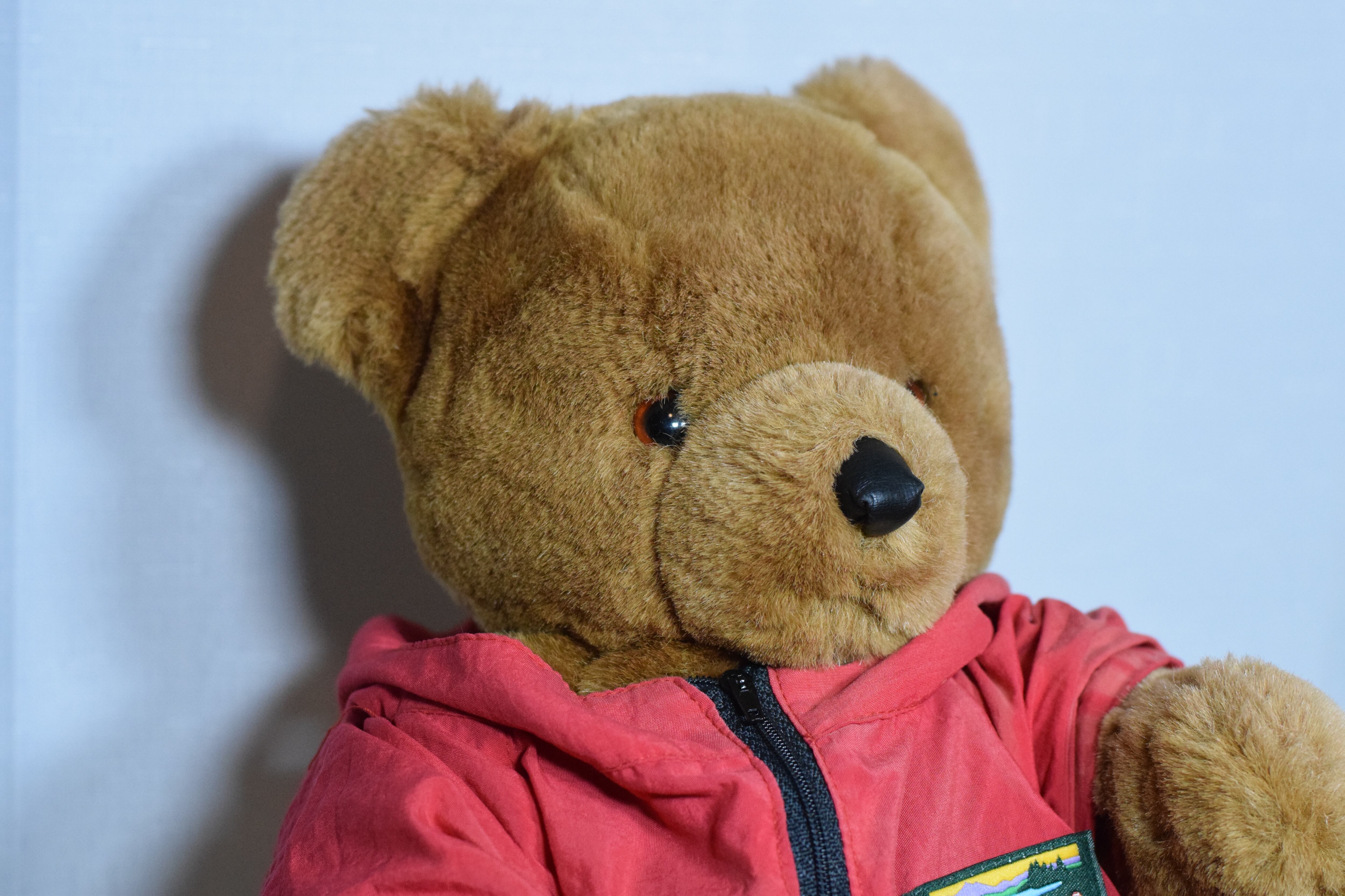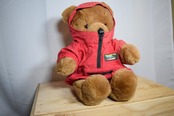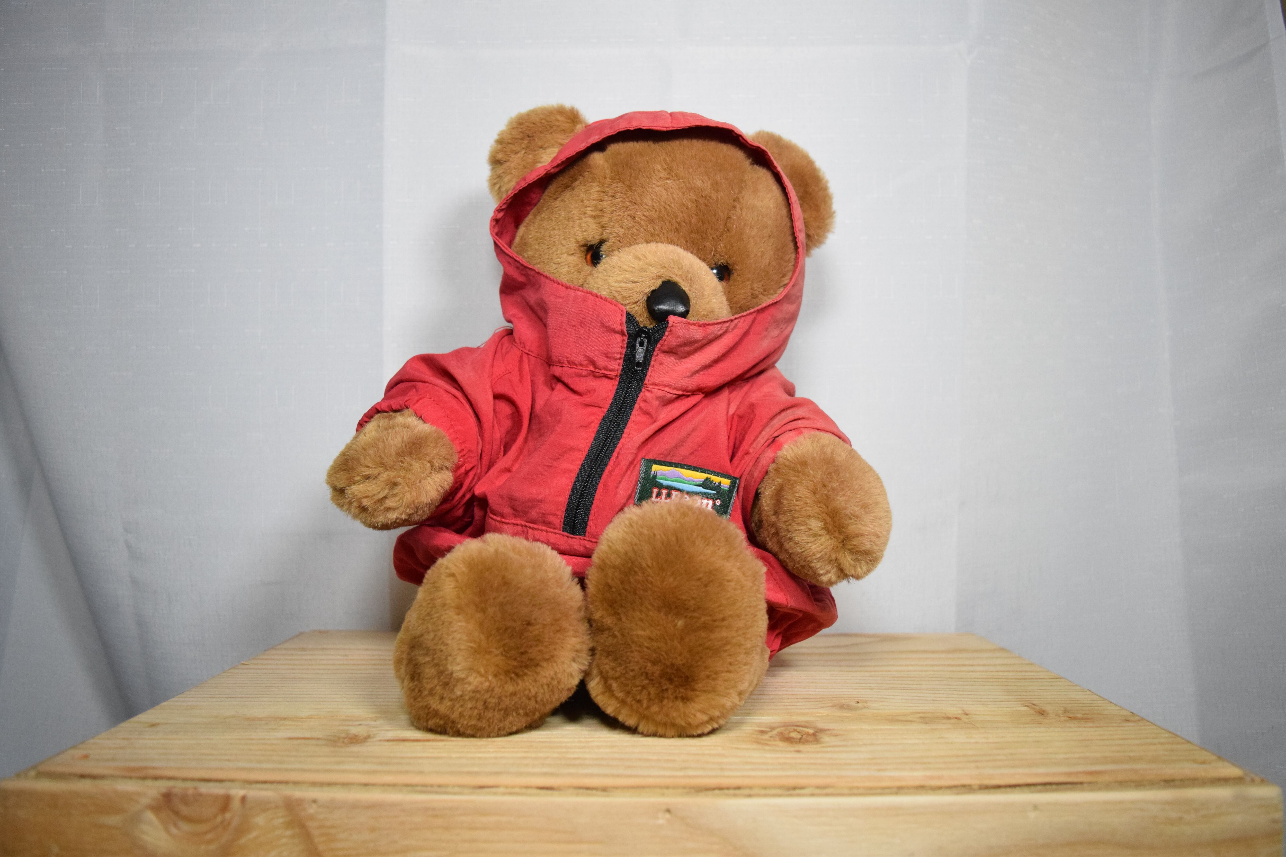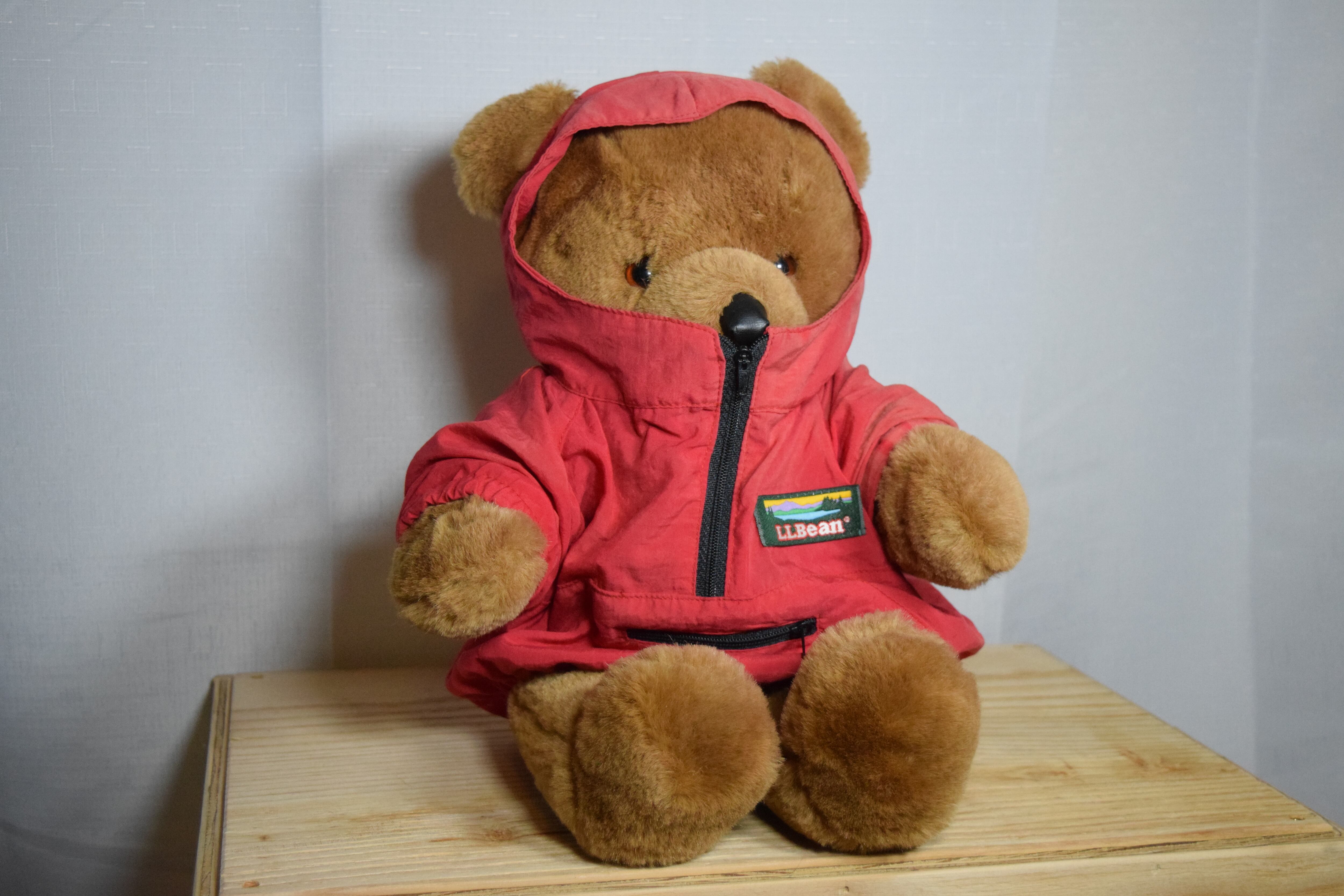 赤いレインコートのようなアウターが特徴的で、キャンプに一緒に連れて行きたくなるようなぬいぐるみです。着ているアウターはLL Beanという1912年にアメリカで設立されたアウトドアブランドの物です。