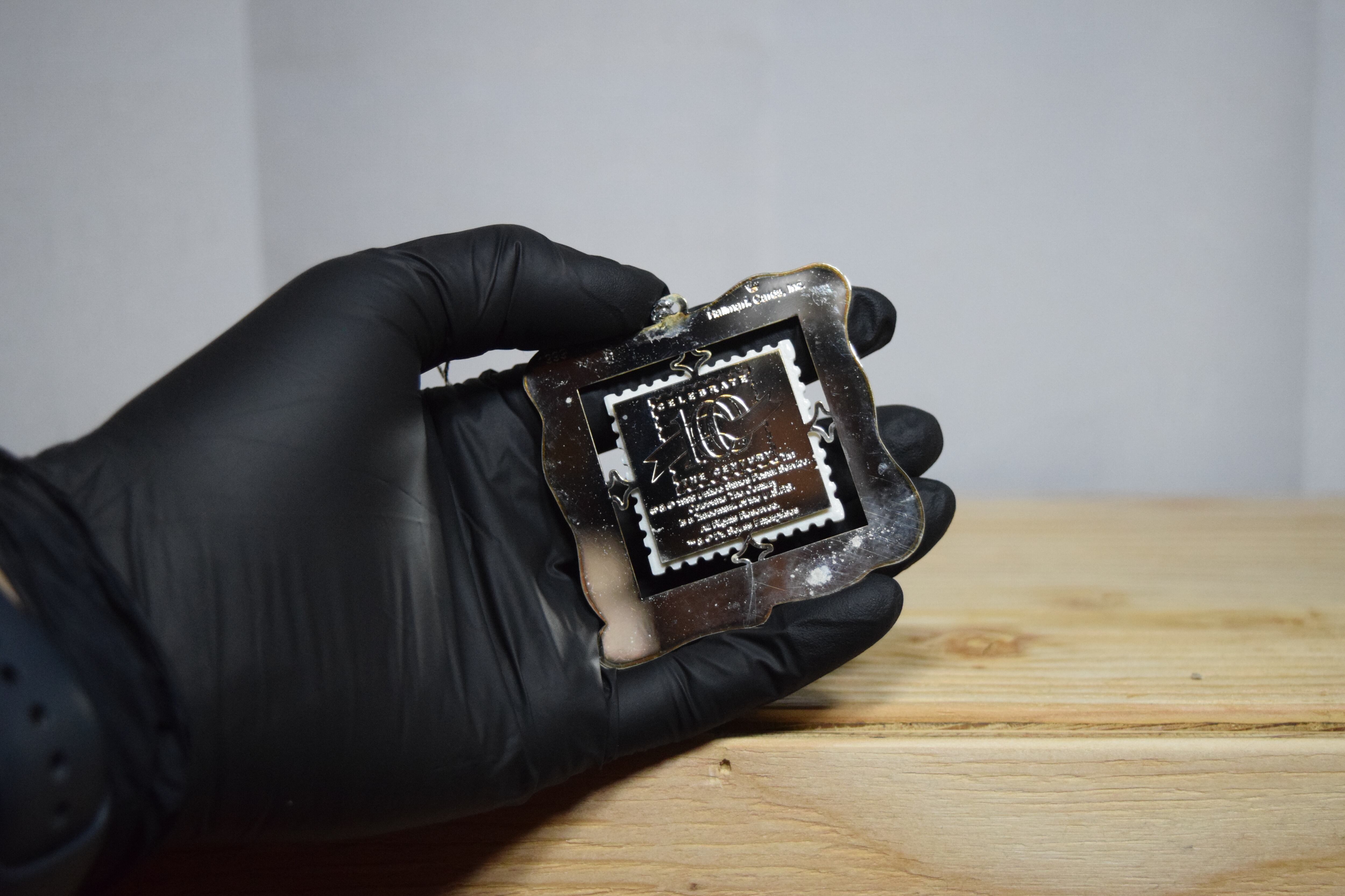 こちらは1999年製 Hallmark社の「The Cat in the Hat」クリスマスオーナメントです。Hallmarkは高品質なオーナメントを多数手がけることで知られ、特に限定品やキャラクターものはコレクターアイテムとして人気があります。中央の切手部分はセラミック製。